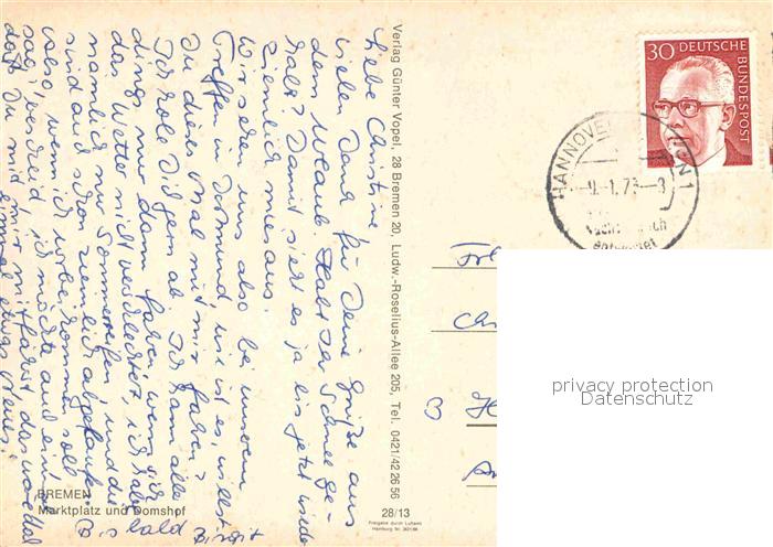 72819593 alte Postkarte BREMEN CITY Marktplatz Domshof postalisch gelaufen Erhaltung siehe scans [NatalD47] KatCode: 11110004011000