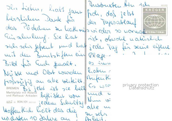 72855510 BREMEN CITY Marktplatz mit Roland Rathaus Arkaden postalisch nicht gelaufen Erhaltung siehe scans [LiesaD40] KatCode: 11110004011000