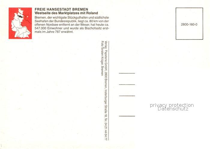 72992252 BREMEN CITY Marktplatz mit Roland Statue Giebelhaeuser Altstadt postalisch nicht gelaufen Erhaltung siehe scans [FriedD77] KatCode: 11110004011000