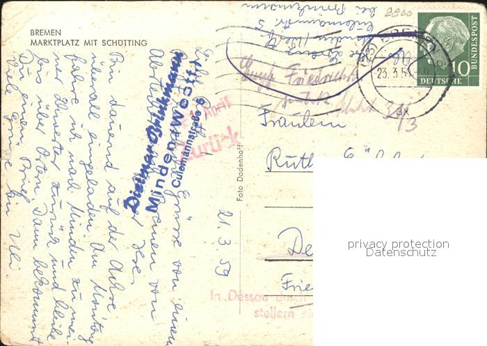 72614722 alte Postkarte BREMEN CITY Marktplatz mit Schuetting postalisch gelaufen Erhaltung siehe scans [WerneD78] KatCode: 11110004011000