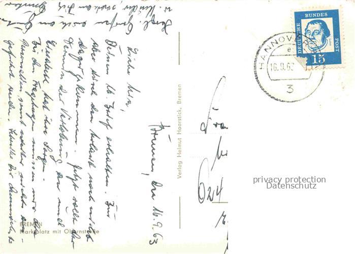 34143578 alte Postkarte BREMEN CITY Marktplatz Obernstrasse postalisch gelaufen Erhaltung siehe scans [FriedD77] KatCode: 11110004011000