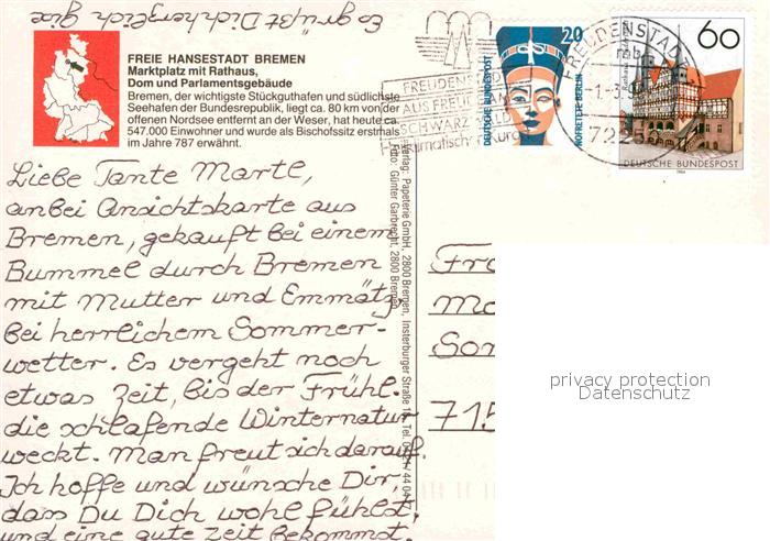 72898229 alte Postkarte BREMEN CITY Marktplatz Rathaus Dom Parlamentsgebaeude postalisch gelaufen Erhaltung siehe scans [AndreD76] KatCode: 11110004011000