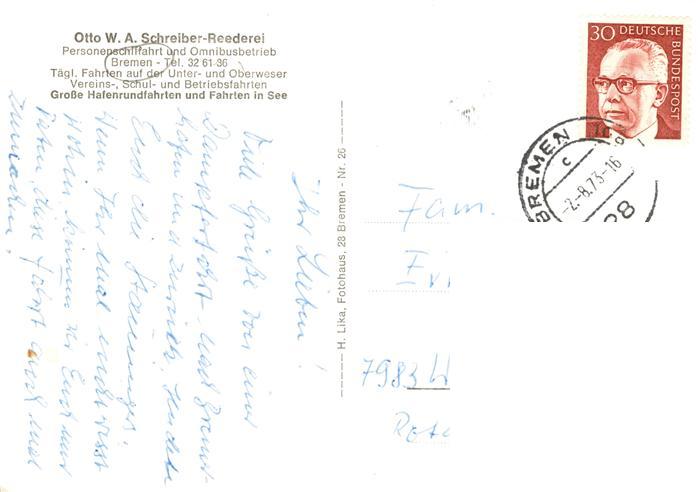 73897815 BREMEN CITY MS Deutschland Hafenrundfahrt postalisch gelaufen Erhaltung siehe scans [WerneD78] alte Postkarte Wern Katcode 11110004011000