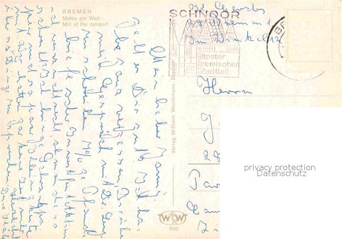 72664513 alte Postkarte BREMEN CITY Muehle am Wall postalisch gelaufen Erhaltung siehe scans [WerneD78] KatCode: 11110004011000