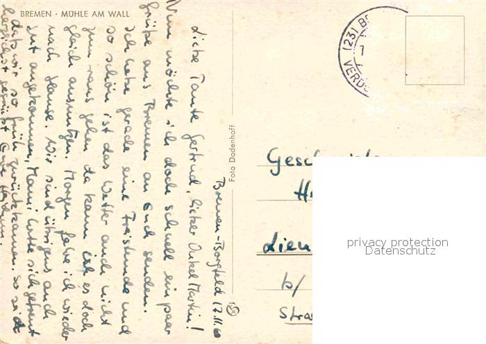 72621803 alte Postkarte BREMEN CITY Muehle am Wall postalisch gelaufen Erhaltung siehe scans [WerneD78] KatCode: 11110004011000