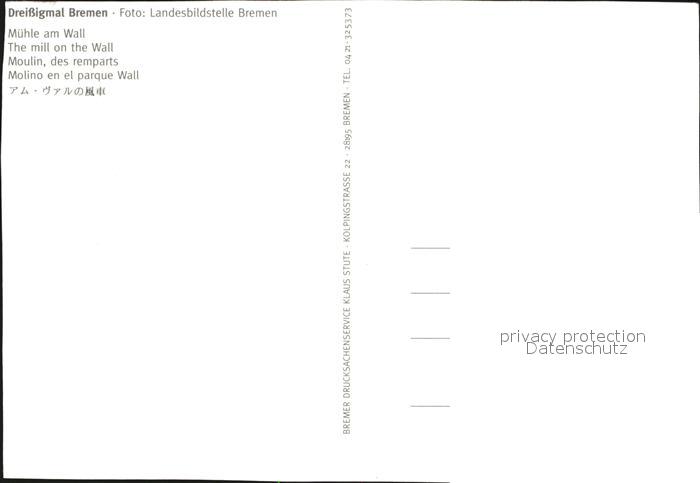 72413755 BREMEN CITY Muehle am Wall postalisch nicht gelaufen Erhaltung siehe scans KatCode: 11110004011000