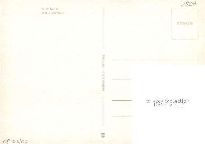 72939235 BREMEN CITY Muehle am Wall postalisch nicht gelaufen Erhaltung siehe scans [PaolaD17] KatCode: 11110004011000