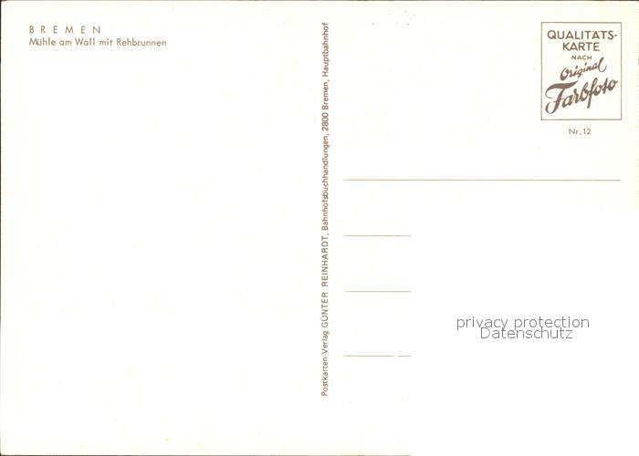 72114266 BREMEN CITY Muehle am Wall mit Rehbrunnen postalisch nicht gelaufen KatCode: 11110004011000