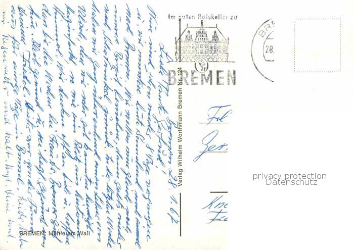72633261 alte Postkarte BREMEN CITY Muehle am Wall Windmuehle Nachtaufnahme postalisch gelaufen Erhaltung siehe scans [FriedD77] KatCode: 11110004011000