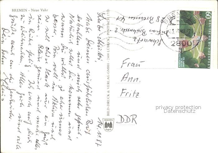 72155392 alte Postkarte BREMEN CITY Neue Vahr Fliegeraufnahme postalisch gelaufen Erhaltung siehe scans KatCode: 11110004011000