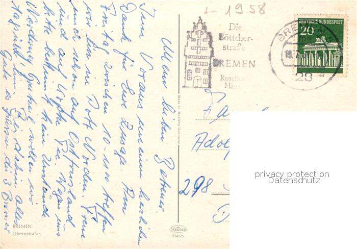 72932157 alte Postkarte BREMEN CITY Obernstrasse postalisch gelaufen Erhaltung siehe scans [LiesaD40] KatCode: 11110004011000