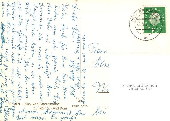 72983993 alte Postkarte BREMEN CITY Obernstrasse mit Rathaus und Dom postalisch gelaufen Erhaltung siehe scans [WerneD78] KatCode: 11110004011000