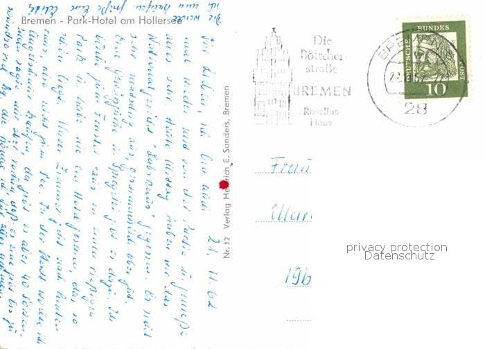 72825767 alte Postkarte BREMEN CITY Park-Hotel am Hollersee postalisch gelaufen Erhaltung siehe scans [LiesaD40] KatCode: 11110004011000