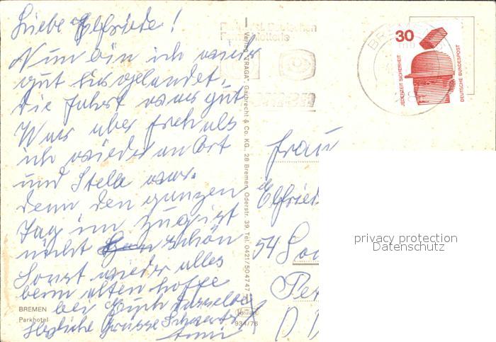 72466917 alte Postkarte BREMEN CITY Parkhotel postalisch gelaufen Erhaltung siehe scans KatCode: 11110004011000