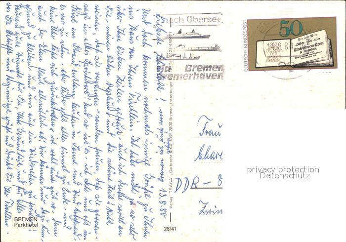 72367830 alte Postkarte BREMEN CITY Parkhotel postalisch gelaufen Erhaltung siehe scans KatCode: 11110004011000