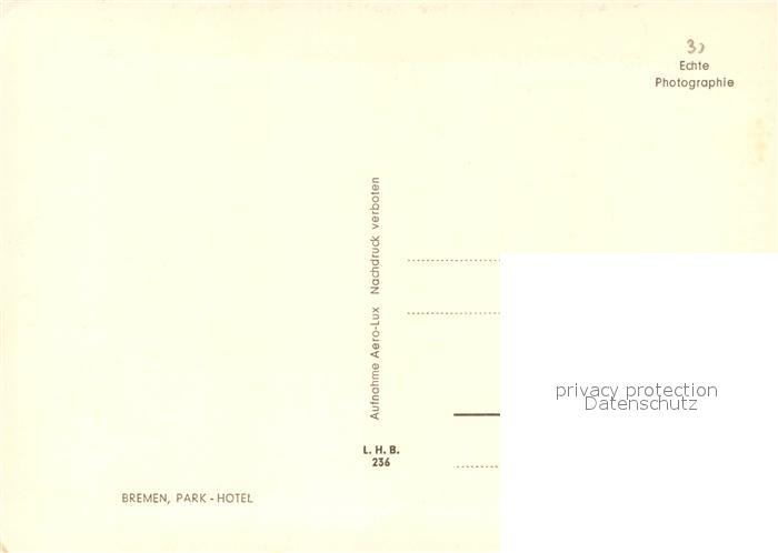 73669437 BREMEN CITY Parkhotel Fliegeraufnahme postalisch nicht gelaufen Erhaltung siehe scans [FriedD77] Frie Katcode 11110004011000