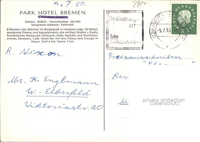 41552949 BREMEN CITY Parkhotel Teich Schwaene postalisch gelaufen Erhaltung siehe scans Alte Ansichtskarte Postkarte alte Postkarte hz_L Katcode 11110004011000
