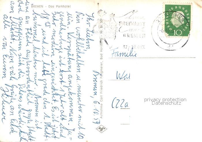 73136798 alte Postkarte BREMEN CITY Parkhotel postalisch gelaufen Erhaltung siehe scans [FriedD77] KatCode: 11110004011000