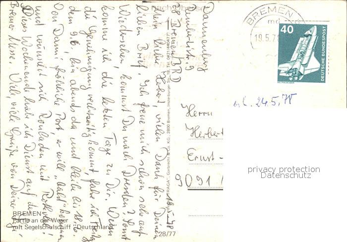 72296953 alte Postkarte BREMEN CITY Partie an der Weser Segelschulschiff Deutschland postalisch gelaufen Erhaltung siehe scans KatCode: 11110004011000