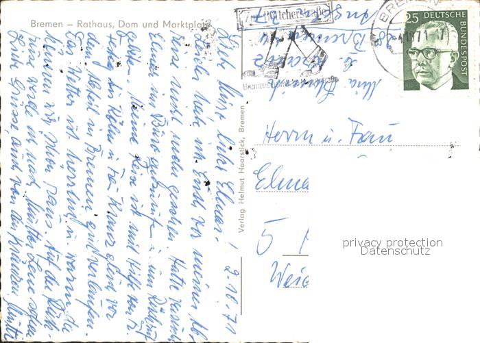 72093677 alte Postkarte BREMEN CITY Rathaus Dom Marktplatz postalisch gelaufen Erhaltung siehe scans KatCode: 11110004011000