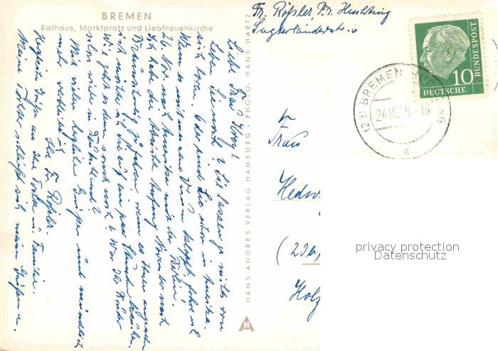 72915428 alte Postkarte BREMEN CITY Rathaus Marktplatz und Liebfrauenkirche postalisch gelaufen Erhaltung siehe scans [WerneD78] KatCode: 11110004011000