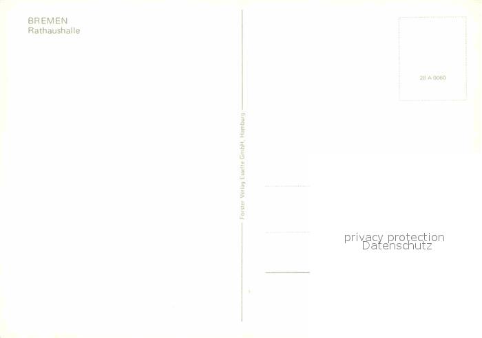 72738702 BREMEN CITY Rathaushalle postalisch nicht gelaufen Erhaltung siehe scans [LiesaD40] KatCode: 11110004011000