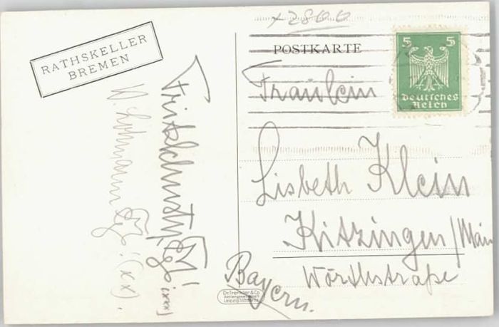 40261664 BREMEN CITY Rathskeller Diplom postalisch gelaufen Alte Ansichtskarte Postkarte alte Postkarte Katcode 11110004011000