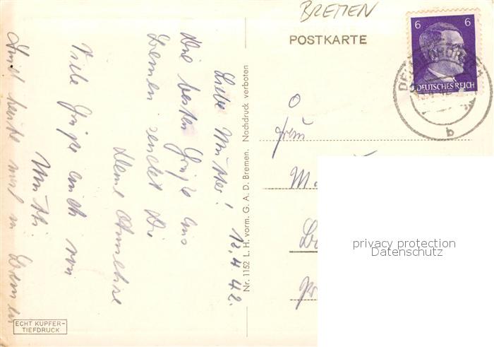74052356 alte Postkarte BREMEN CITY Reichs Kolonial Ehrenmal postalisch gelaufen Erhaltung siehe scans [WerneD78] KatCode: 11110004011000