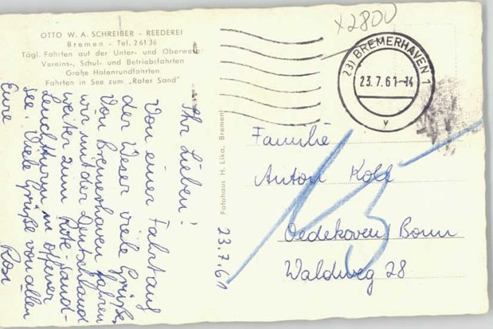 40260524 BREMEN CITY Rote Sand Leuchtturm postalisch gelaufen Alte Ansichtskarte Postkarte alte Postkarte Katcode 11110004011000