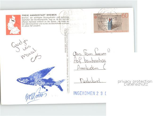 72302313 alte Postkarte BREMEN CITY Schnoor postalisch gelaufen Erhaltung siehe scans KatCode: 11110004011000