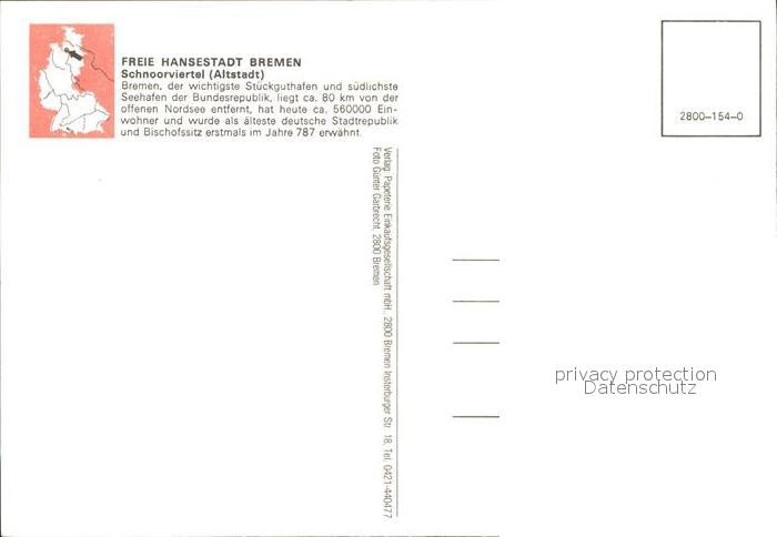 72518861 BREMEN CITY Schnoorviertel postalisch nicht gelaufen Erhaltung siehe scans KatCode: 11110004011000
