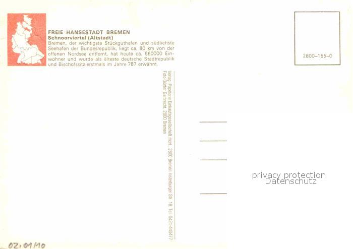 72910017 BREMEN CITY Schnoorviertel Gasse in der Altstadt postalisch nicht gelaufen Erhaltung siehe scans [LiesaD40] KatCode: 11110004011000