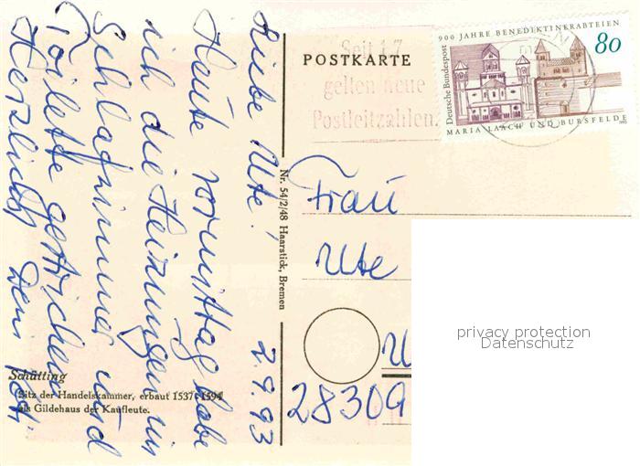 72899389 alte Postkarte BREMEN CITY Schuetting Sitz der Handelskammer postalisch gelaufen Erhaltung siehe scans [AndreD76] KatCode: 11110004011000