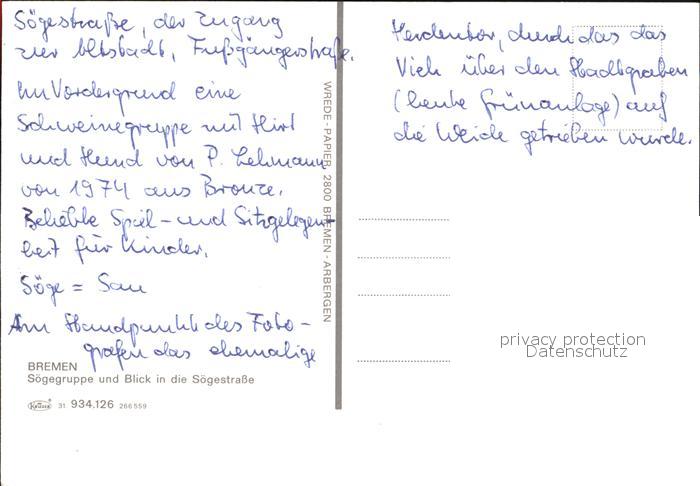 72596518 BREMEN CITY Soegegruppe Skulpturen Blick in die Soegestrasse postalisch nicht gelaufen Erhaltung siehe scans [FriedD77] KatCode: 11110004011000