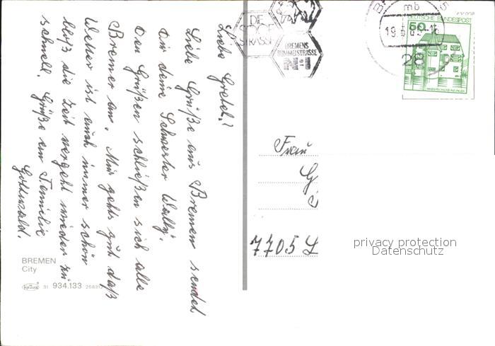 72523771 alte Postkarte BREMEN CITY Stadtansicht postalisch gelaufen Erhaltung siehe scans KatCode: 11110004011000