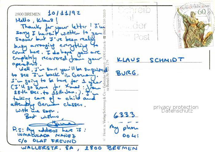 72885121 alte Postkarte BREMEN CITY Stadtbild Blick ueber die Weser Marktplatz Rathaus Dom Giebelhaeuser Roland Statue postalisch gelaufen Erhaltung siehe scans [FriedD77] KatCode: 11110004011000