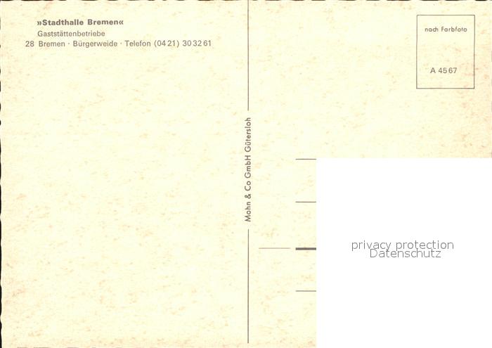 72413977 BREMEN CITY Stadthalle postalisch nicht gelaufen Erhaltung siehe scans KatCode: 11110004011000