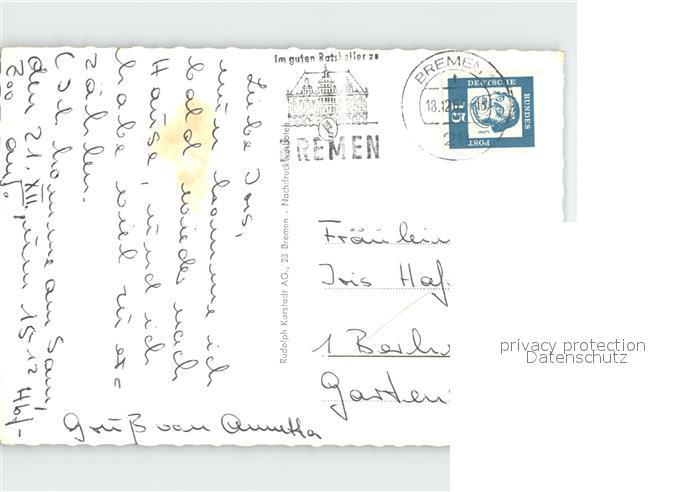 72362185 alte Postkarte BREMEN CITY Stadtmusikanten mit Buergerstuben postalisch gelaufen Erhaltung siehe scans KatCode: 11110004011000