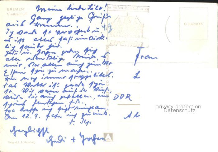 72177985 alte Postkarte BREMEN CITY Stadtzentrum Fliegeraufnahme postalisch gelaufen Erhaltung siehe scans KatCode: 11110004011000