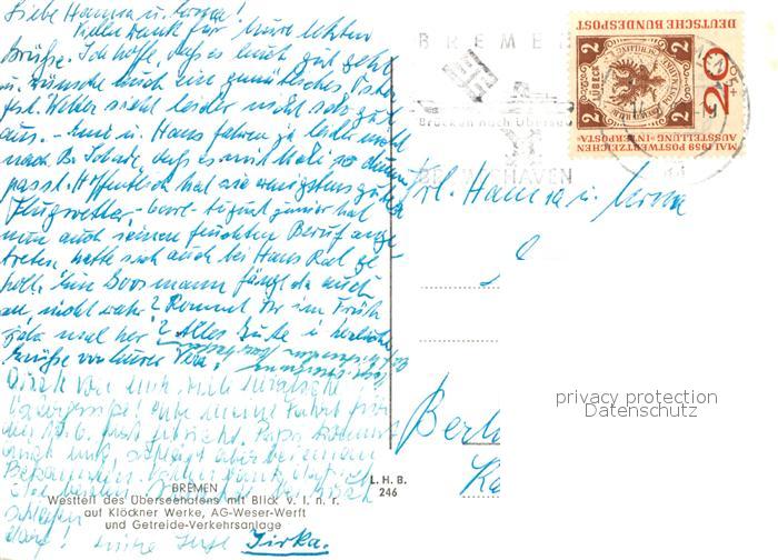 72928127 alte Postkarte BREMEN CITY ueberseehafen postalisch gelaufen Erhaltung siehe scans [AndreD76] KatCode: 11110004011000