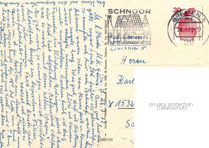 73010327 alte Postkarte BREMEN CITY Universitaet postalisch gelaufen Erhaltung siehe scans [WerneD78] KatCode: 11110004011000