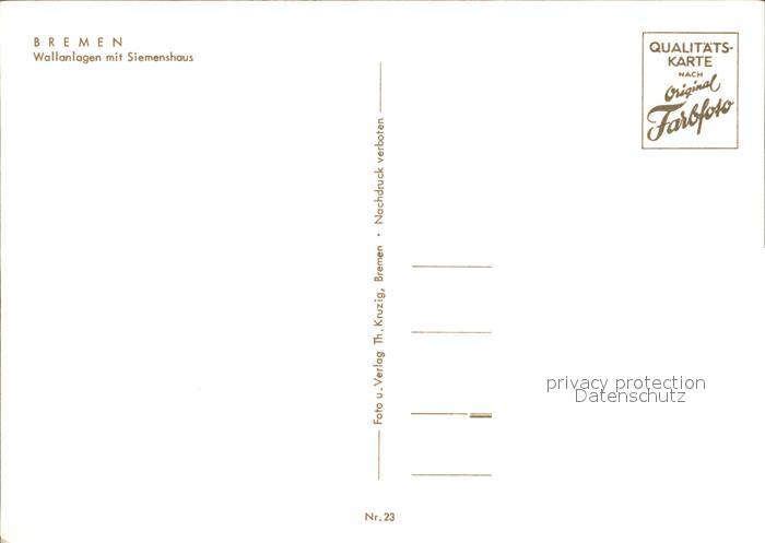 72420379 BREMEN CITY Wallanlagen mit Siemenshaus postalisch nicht gelaufen Erhaltung siehe scans KatCode: 11110004011000