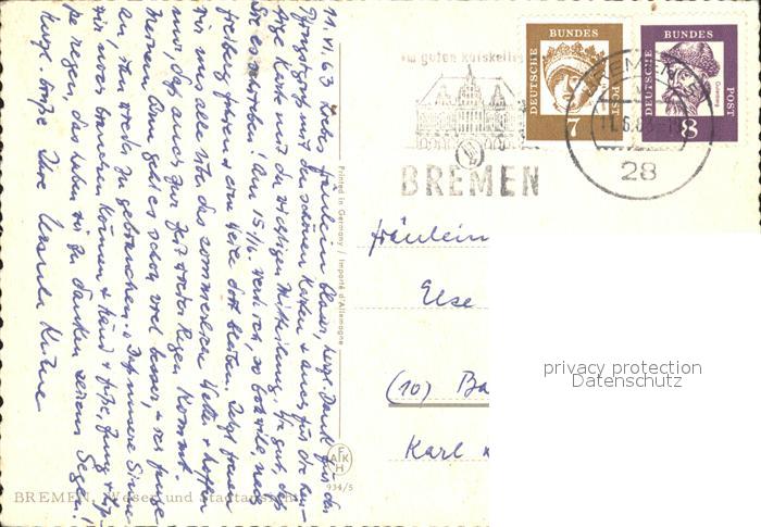 72367887 alte Postkarte BREMEN CITY Weser Teilansicht postalisch gelaufen Erhaltung siehe scans KatCode: 11110004011000