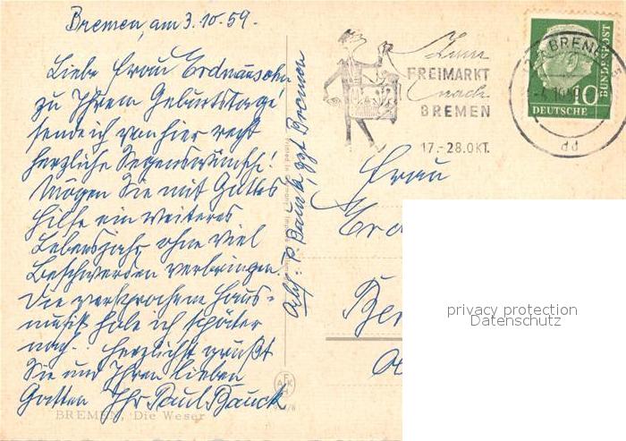 73128847 alte Postkarte BREMEN CITY Weser postalisch gelaufen Erhaltung siehe scans [KathaD81] KatCode: 11110004011000