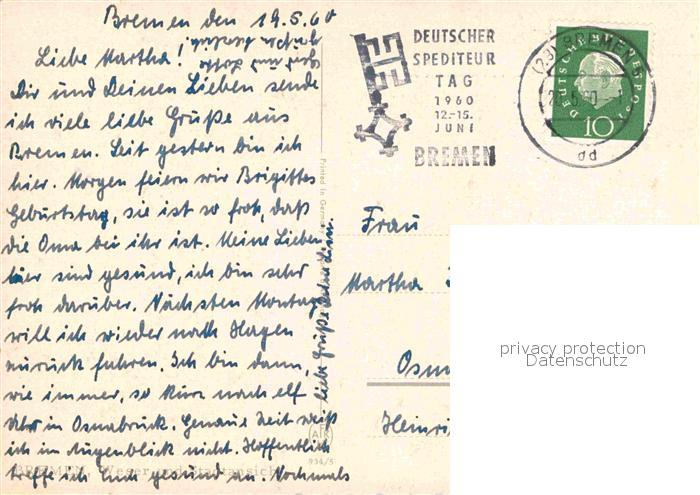 72717524 alte Postkarte BREMEN CITY Weserpartie postalisch gelaufen Erhaltung siehe scans [LiesaD40] KatCode: 11110004011000