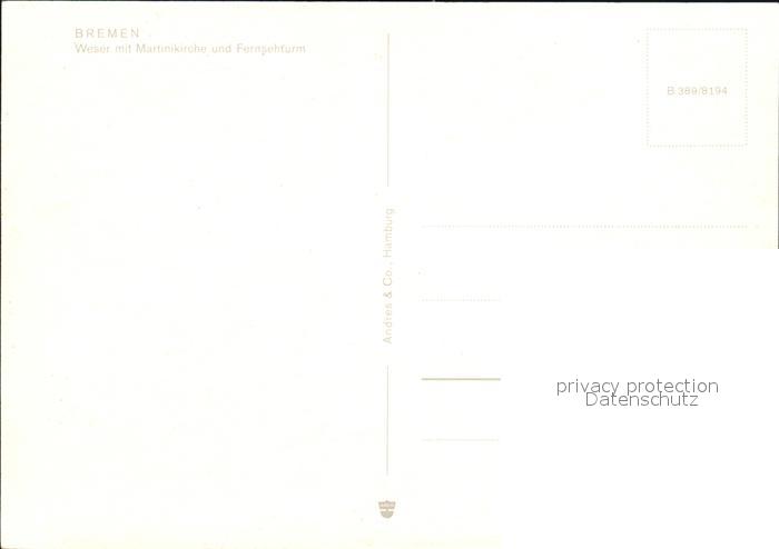 72547209 BREMEN CITY Weserpartie mit Martinikirche und Fernsehturm postalisch nicht gelaufen Erhaltung siehe scans [WerneD78 kv017box] KatCode: 11110004011000