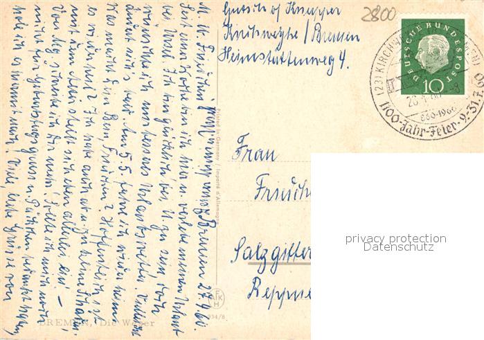 73059229 alte Postkarte BREMEN CITY Weserpartie postalisch gelaufen Erhaltung siehe scans [WerneD78] KatCode: 11110004011000