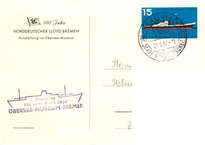 73872248 BREMEN DE 100 Jahre Norddeutscher Lloyd Bremen Portrait H. H. Meier Gruender der Norddeutschen Lloyd Ausstellung im uebersee-Museum postalisch gelaufen Erhaltung siehe scans [FriedD77] alte Postkarte Frie Katcode 11110004011000