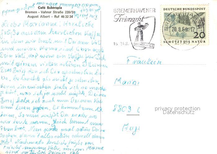 73172892 alte Postkarte BREMEN DE Cafe Subtropia postalisch gelaufen Erhaltung siehe scans [LiesaD40] KatCode: 11110004011000