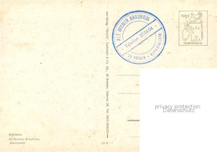 73205093 BREMEN DE Marktplatz Alt-Bremer Brauhaus postalisch nicht gelaufen Erhaltung siehe scans [NatalD47] KatCode: 11110004011000